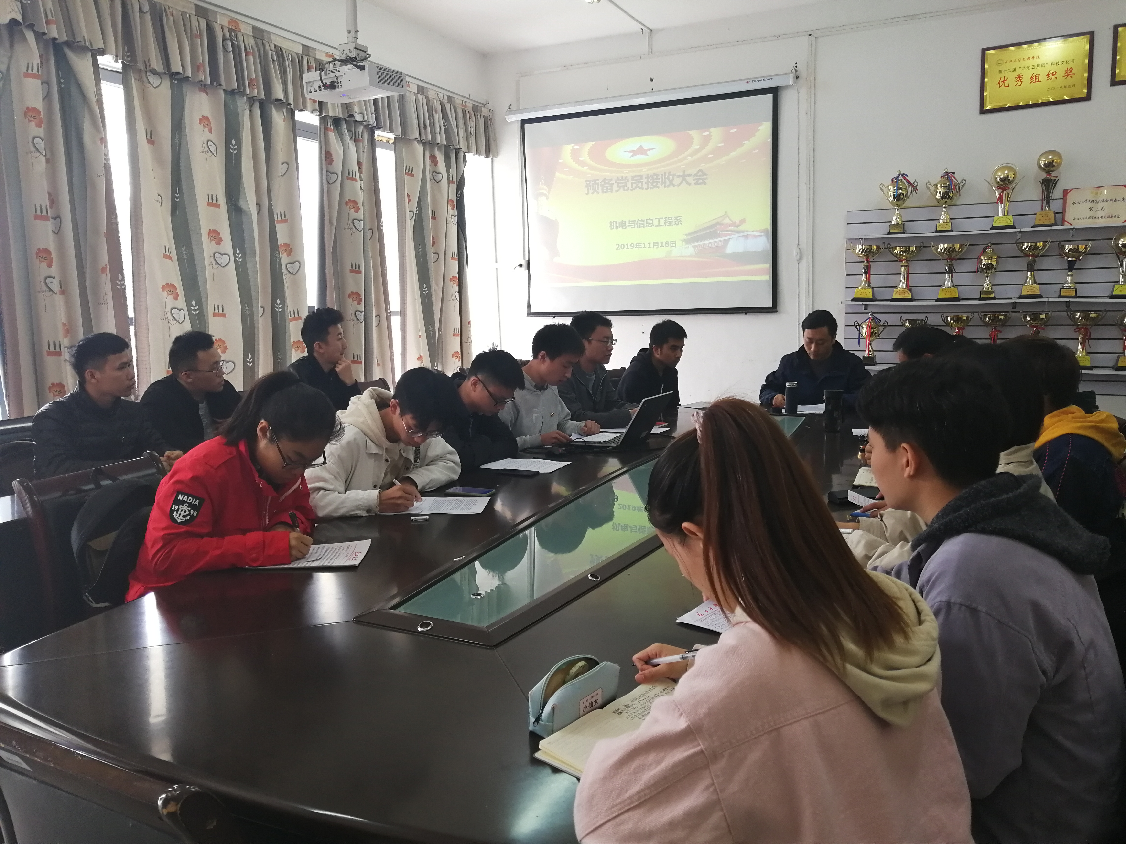 本网讯(员工记者 刘文婷)11月18日中午,在我系会议室,员工党支部召开党员大会。大会分为三个阶段:预备党员转正、预备党员接收、入党宣誓。会议讨论表决张仁贵、宋博武、柳迪、张轶程四名同志的转正,和明子胜、胡波、饶艳丽、周雪明、马力五名拟发展对象的接收事项。系党总支副书记辛裕主持会议,相关培养考察人一同参与。