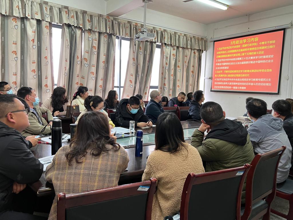 本网讯(通讯员 燕梦蝶)3月17日下午14点,我系教工党支部在会议室开展3月份政治学习和“支部主题党日”活动。会议由教工党支部书记呙明辉主持,全体教职工参加。