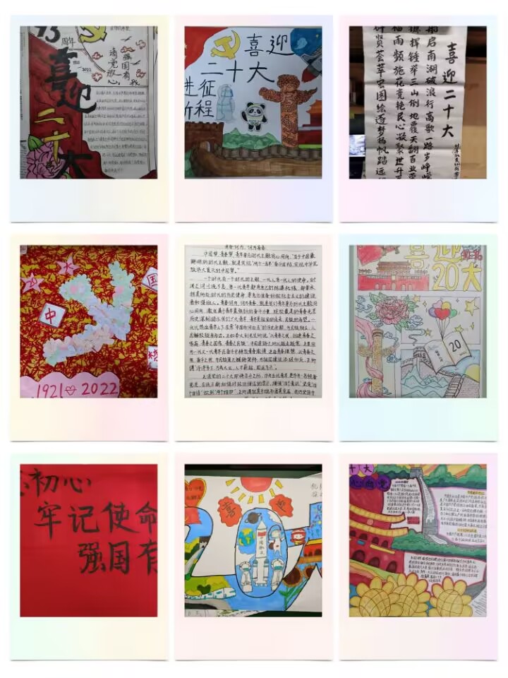 活动期间,同学们通过书法、手抄报、绘画等作品形式以良好的精神风貌,积极向上的心态来迎接党的二十大胜利召开。展现了员工对党史知识的认识,表达了同学们爱党爱国的思想,以及坚定的共产主义信念,其中计科5222邓明煊同学的手抄报作品,表达了他迎接党的二十大,希望党的二十大胜利召开的美好愿望,同时衷心的祝福党,希望党越来越好。