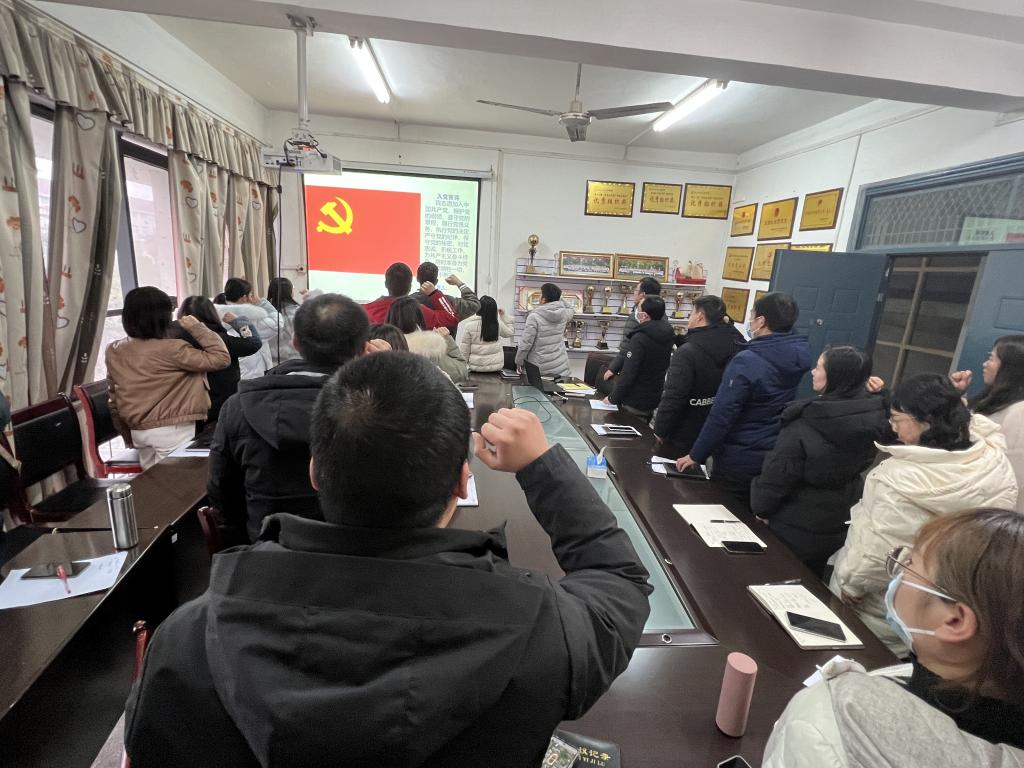 在支部主题党日活动中,全体党员重温入党誓词、交纳党费、集体诵读《中国共产党章程》,学习《习近平谈治国理政》第四卷第十一至第十五部分、beat365官网中文版本关于开展违规吃喝问题专项整治的工作方案及公司开展违规吃喝问题专项整治工作动员会的精神、2023年全国教育工作会议精神等内容。