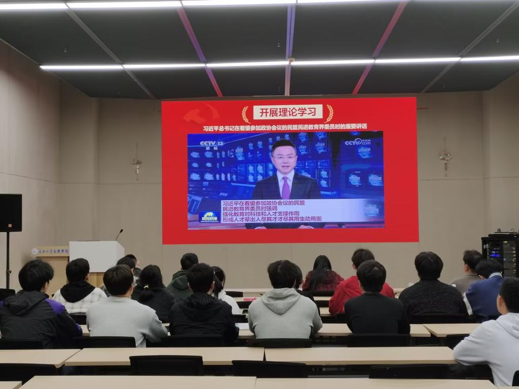 政治学习阶段,全体党员集体学习习近平总书记在看望参加政协会议的民盟民进教育界委员时的重要讲话;学习2025年全国教育工作会议精神;学习2025年全国两会精神;学习2025年全省教育大会精神;学习《求是》杂志发表的习近平总书记重要文章——《经济工作必须统筹好几对重要关系》。