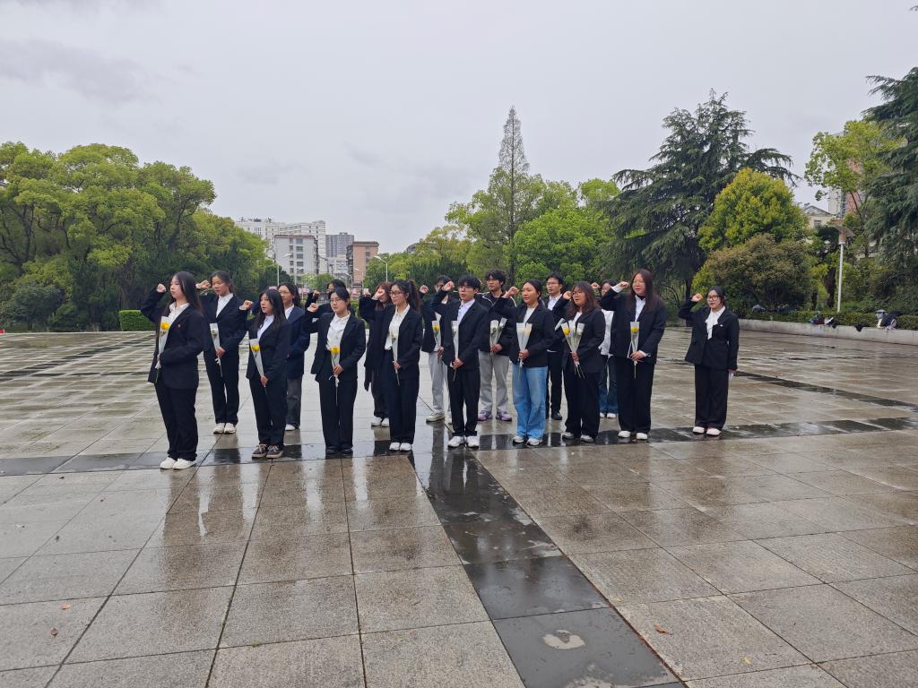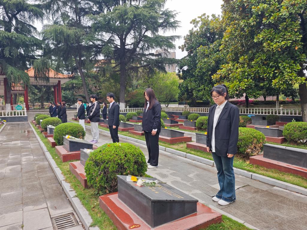 活动中,同学们在主持人带领下共同缅怀革命烈士,鉴往知来。随后全体志愿者默哀,以无声的追思致敬用鲜血染红旗帜、用生命铸就丰碑的革命英烈。默哀仪式结束后,同学们进入墓园区域将备好的鲜花献给英雄,表达敬重与哀思。
