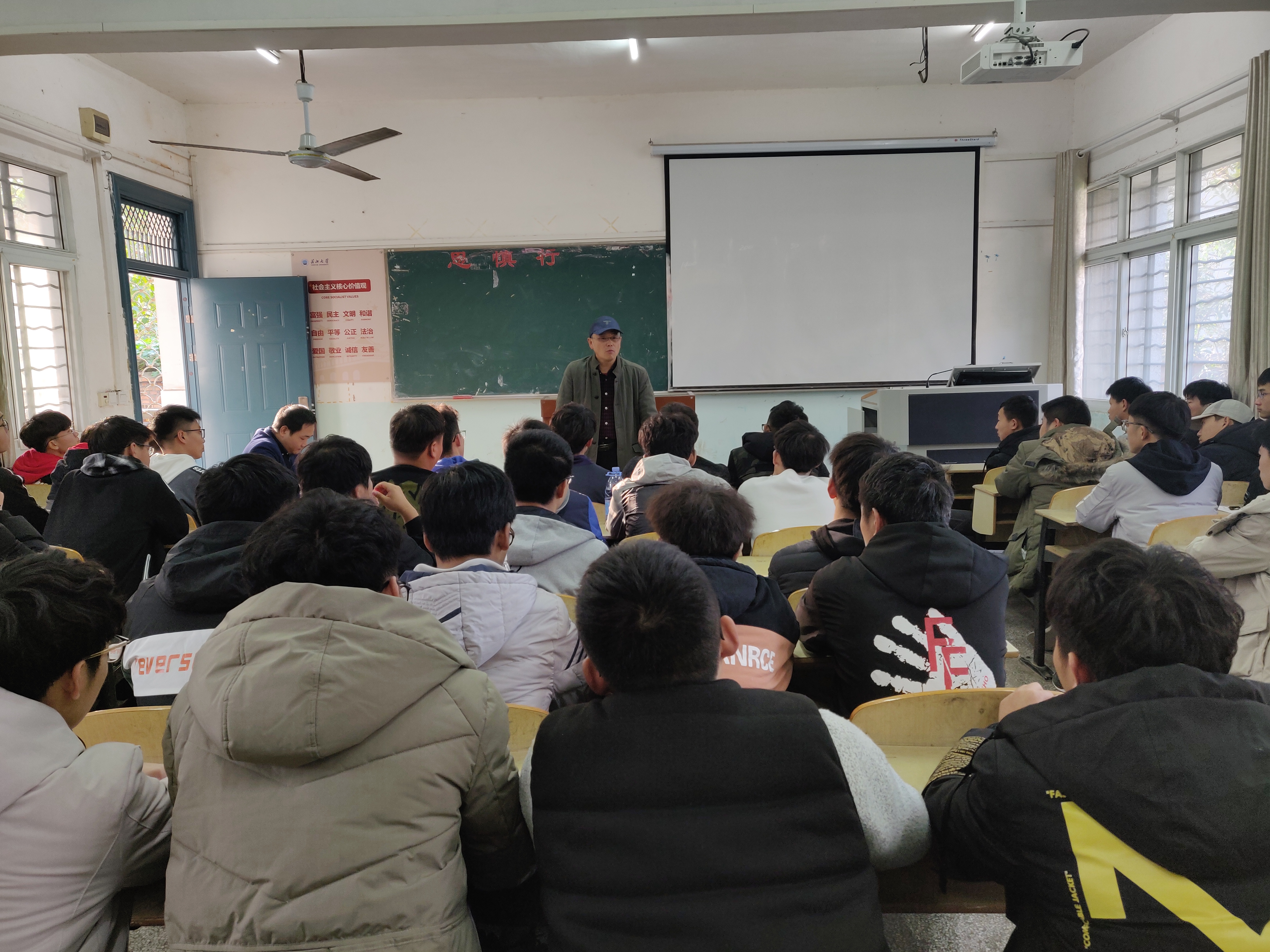 西区2教106教室气氛热烈、掌声雷动。朱继平与他联系的机械5191全体同学见面,开展班会活动。他用幽默诙谐的语言向同学们进行交谈,营造出轻松和谐温馨的画面。他通过讲述自己的人生经历,希望同学们学会多沟通、多理解,共同维护班级荣誉,积极学习、乐观向上,绽放出自己的风采,同时,他以一名普通班级成员身份加入该班班级QQ群,并按照班费标准交纳了班费,表示以后要更多融入大家,积极参加班级活动,打造团结、进步、向上的温暖班集体。