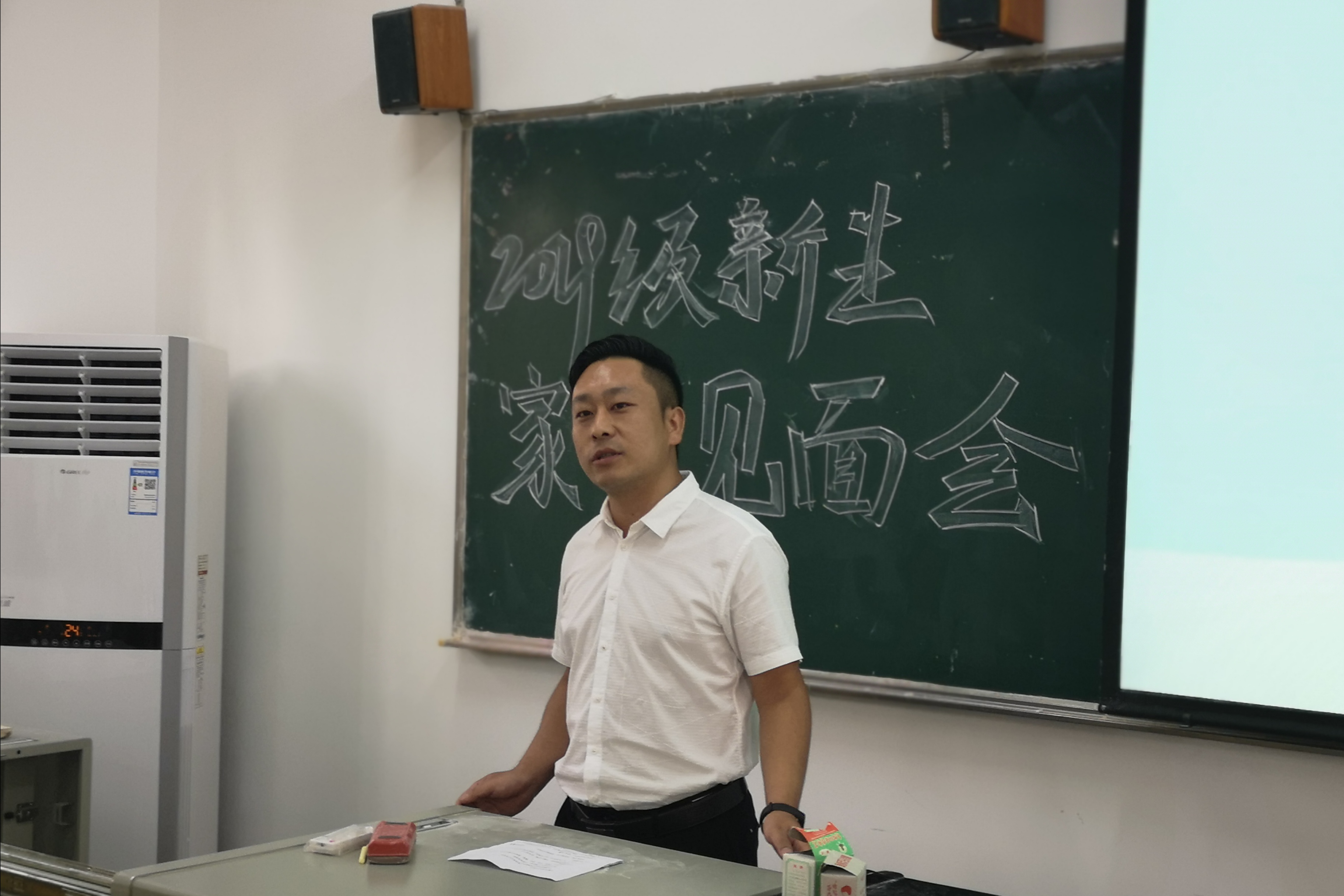 本网讯(员工记者常伟)9月6日下午,在3教204教室,我系开展2019级新生家长见面会。系主任付兵、副主任呙明辉、党总支副书记辛裕、新生辅导员王琳,及各班班主任老师出席,2019级新生家长代表参加见面会。会议由系党总支书记吴海良主持。