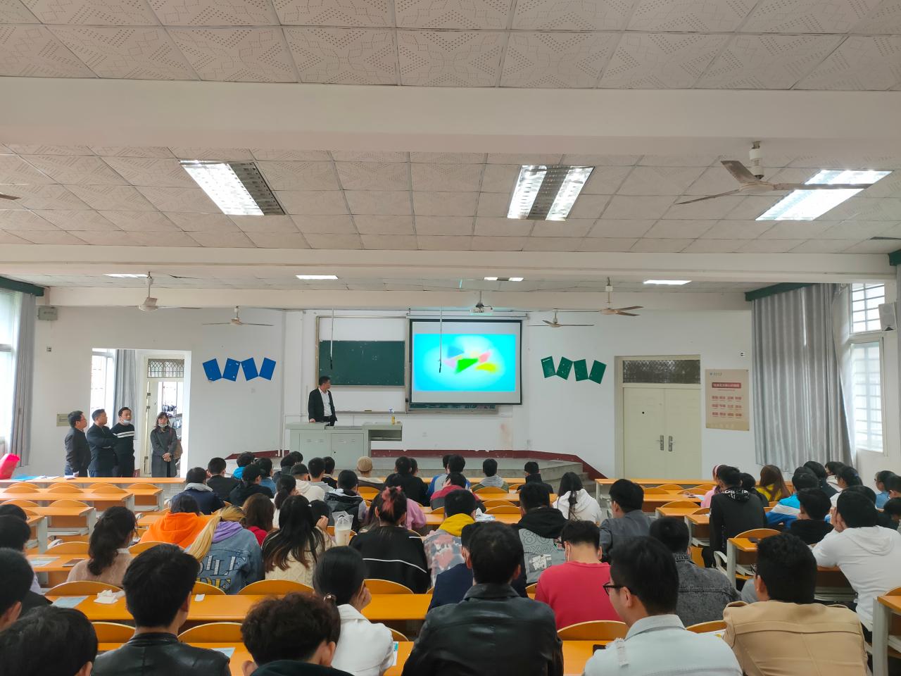 该公司人事行政综合部经理结合宣传片播放,围绕关于我们、岗位需求、科技创新、薪酬制度四个方面对公司及其分公司进行详细介绍,并结合自身经历和就业经验为同学们讲解了当代老员工的就业前景和方向。随后,公司招聘人员对应聘所需的材料和具体的流程步骤进行讲解,并对同学们提出的问题一一解答,邀请了有意愿的同学进行填表反馈。