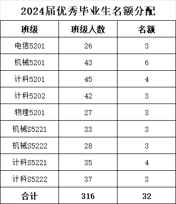 应届毕业生总人数的10%以内。结合评选条件及各班综合表现,确定各班级优秀毕业生名额如下: