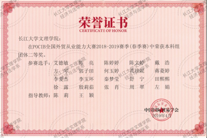 POCIB全国外贸从业能力大赛 2018-2019赛季(春季赛)团体二等奖
