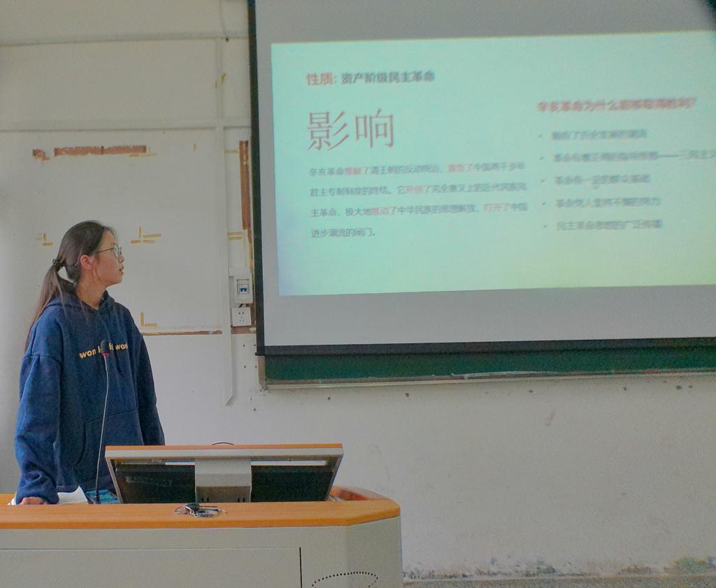 各班对主题团课的学习都取得了较好的效果。国贸5201班主持人激情演讲,引领同学们对“为什么要弘扬和传承辛亥革命精神”进行深入思考,同学们积极回答主持人的提问,分享各自的看法;法学5202班通过对比今天与一百多年来中国社会发生的深刻变化,结合当代人民的幸福生活,给同学们讲通了辛亥革命的伟大历史意义。
