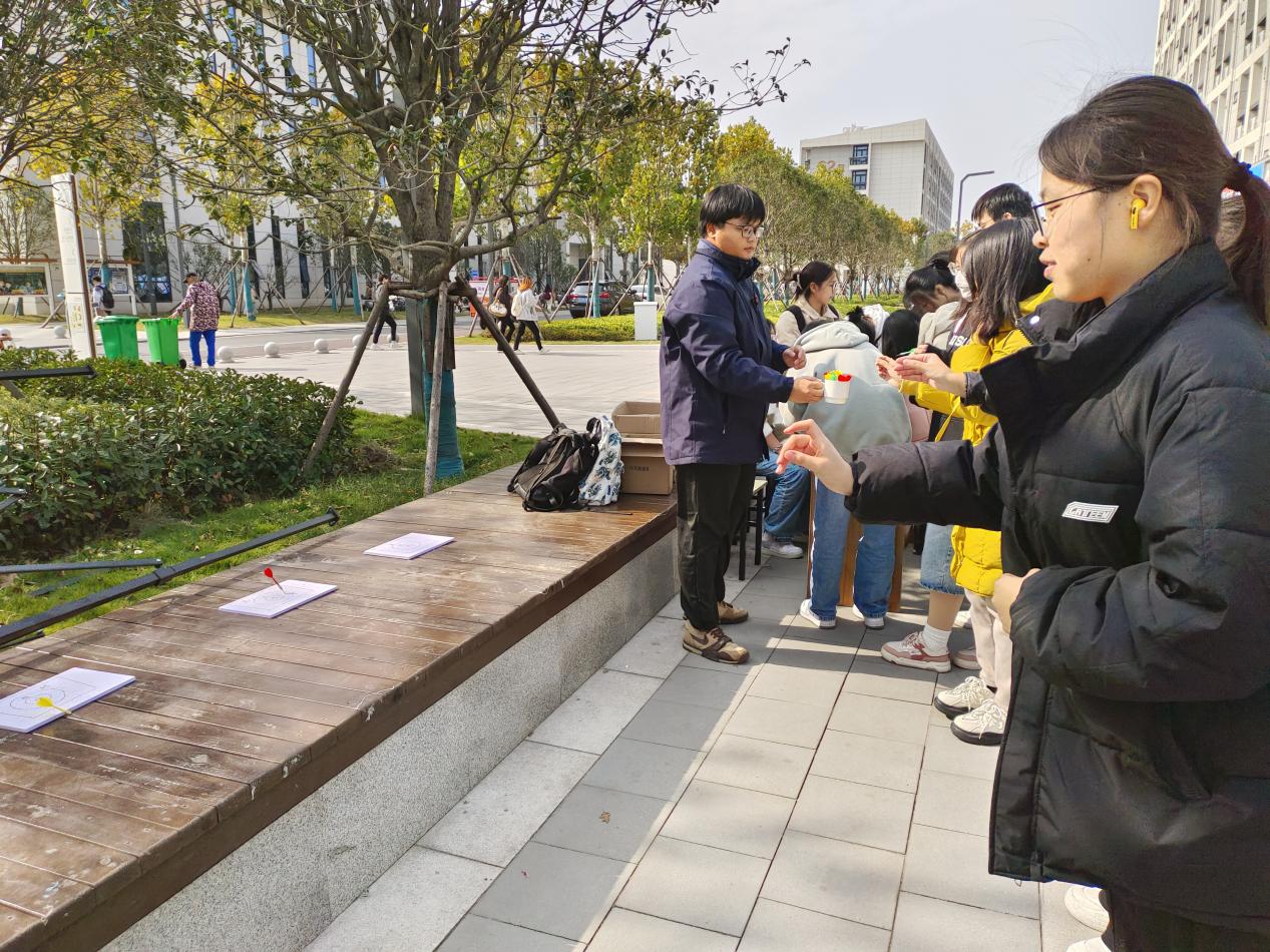 本次活动主要由“撕标签”和“投飞镖”两部分组成。在撕标签活动中,参与人员找到自己曾被片面定义过的标签,划掉它,并在卡片上写下反驳这些偏见与歧视的文字,收获直面自我的勇气,便可得到一枚可爱的小熊猫钥匙扣。在投掷飞镖的活动中,每位参与者有一次投掷的机会。活动背景为人最好以百分之多少的自信来面对接下来的生活。活动奖项一等奖、二等奖、三等奖,分别对应飞镖盘上的100%、80%、60%,若没有投到相应的百分比区域,也可以获得参与奖。在同学们的欢声笑语中,在工作人员的热情邀请下,引来了众多同学前来参与,工作人员细心讲解活动规则,并鼓励大家勇于挑战自我,塑造自信。