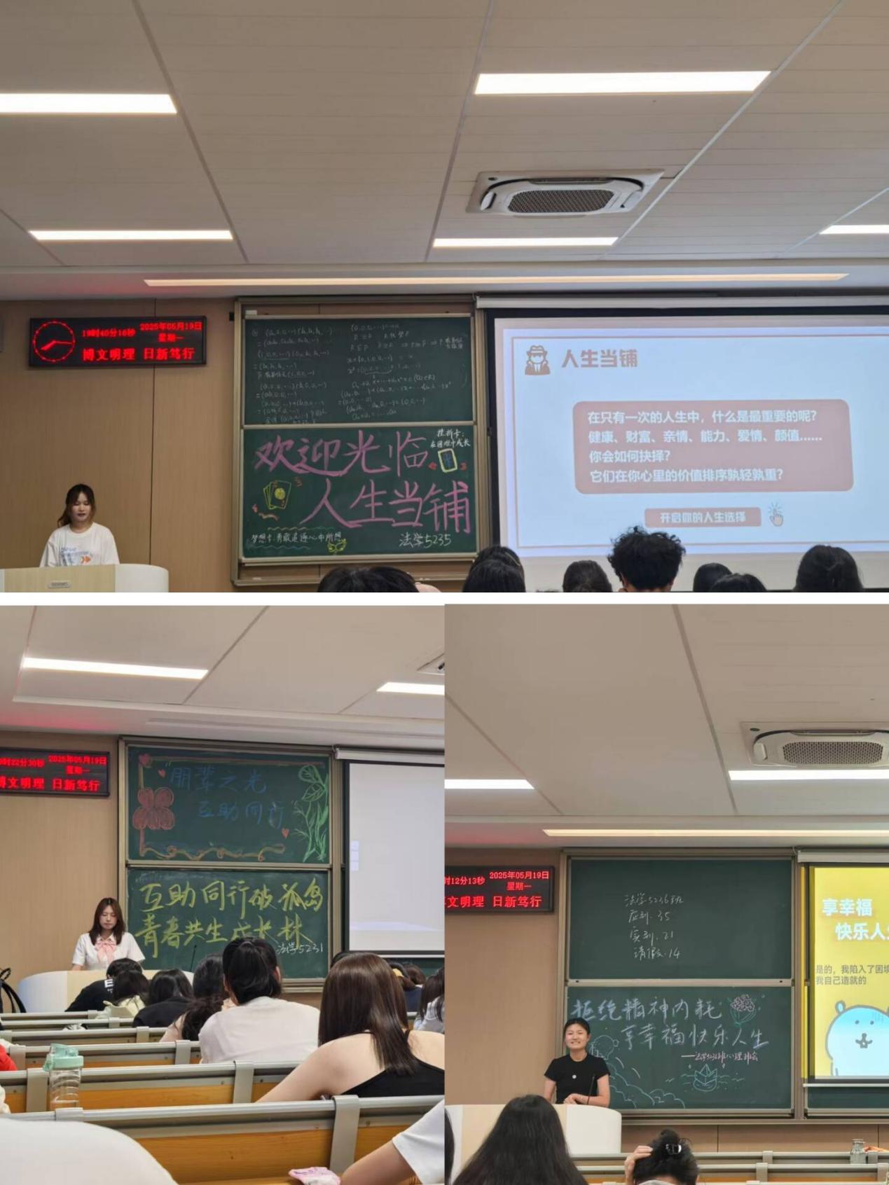 在 “十佳心理委员” 选拔环节,法学 5231 班龚吴欣、5235 班于琪琪、5236 班钟秋三位同学踊跃参赛,尽显基层心理骨干担当。龚吴欣积极策划组织心理主题班会,有效营造班级交流氛围;于琪琪秉持耐心态度,认真倾听同学心声并及时给予关怀;钟秋凭借扎实的专业知识,为同学提供切实可行的心理调适建议。经过综合考量,龚吴欣、钟秋凭借优异表现成功晋级决赛,后续将在决赛舞台上继续展现服务同学心理健康的能力。