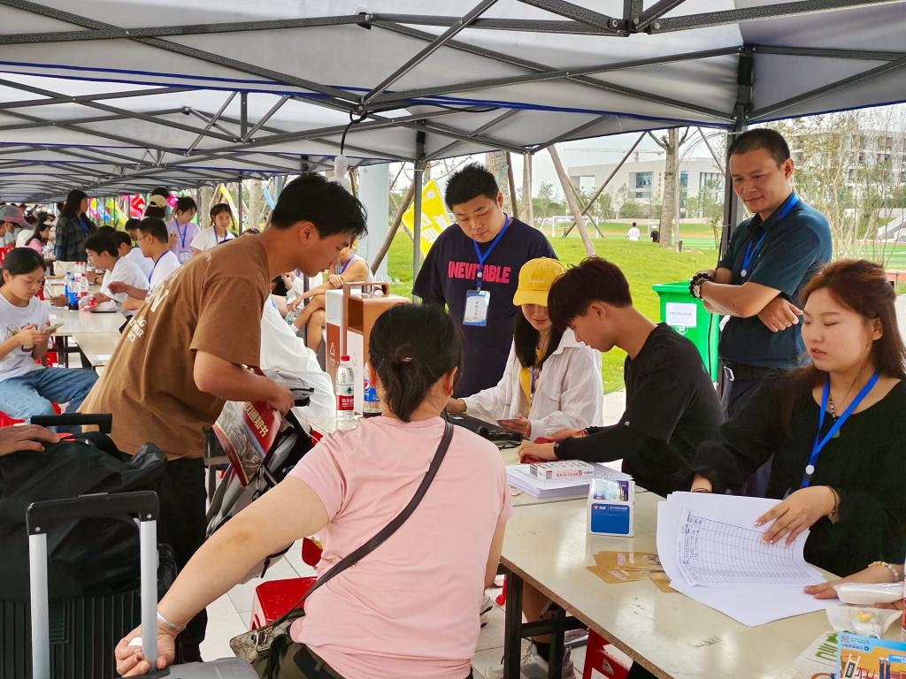 九月二日一大早,经法系党总支书记邹姜,常务副主任罗明、党总支副书记杨杉杉来到现场,统一指挥协调迎新工作。各新生班辅导员、团总支员工会志愿者服务队成员及全体员工干部等也齐聚迎新现场,为迎新工作蓄势待发。迎新现场高挂着迎新横幅,迎新准备工作有条不紊的开展。迎新过程中,经法系领导班子殷切询问各项工作进展和新生情况,悉心指导亲身参与,字字句句充满关切。同时,系部领导还和公司领导一起为报到当天过生日的同学送上生日祝福。各班辅导员耐心解答新生的问题,认真登记收集好员工的相关资料,和各自班级同学亲切交流并了解班级同学情况。志愿者们带领着2023级新生进行身份核验,办理入学手续,帮助新生们搬运行李,怀揣着饱满的热情迎接新生的到来。经法系师生们热情周到的服务很快消除了新生出来乍到的陌生感紧张感,良好的工作素养和热情细致的服务态度形成一道亮丽的风景线。