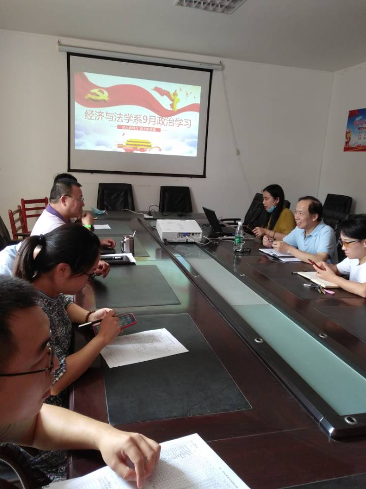 9月11日下午2点30,经法系全体教职工在系部会议室开展9月政治学习和支部主题党日活动,会议由党总支书记李成军主持。