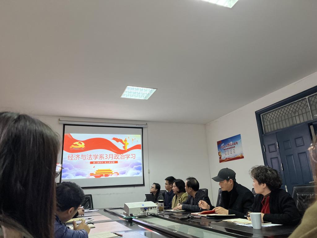 3月23日下午14:30,经法系全体教职工在系会议室开展3月政治学习和支部主题党日活动。会议由党总支书记邹姜主持。
