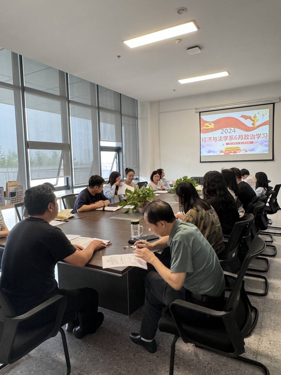 6月20日下午14:00,经法系全体教职工在系会议室开展6月政治学习和支部主题党日活动。会议由党总支书记辛裕主持。