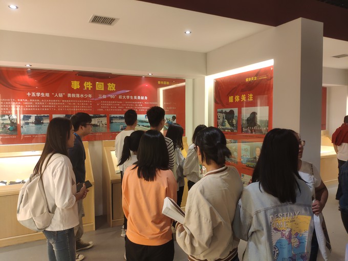 同学们在纪念馆大厅集合完毕后,辅导员文国霞、卢佳智向同学们强调了参观时的注意事项和安全提醒。现场气氛庄严肃穆,同学们排成整齐的队伍,怀揣着敬仰之情来到纪念馆内。同学们在英雄事迹前驻足观看,被英雄事迹所感动。参观结束后,全体新生在辅导员的带领下以班级为单位进行了观后感分享活动,大家纷纷表示,要继承烈士遗志,学习和弘扬“人链”精神,用实际行动为班级、公司、社会做出自己的贡献。