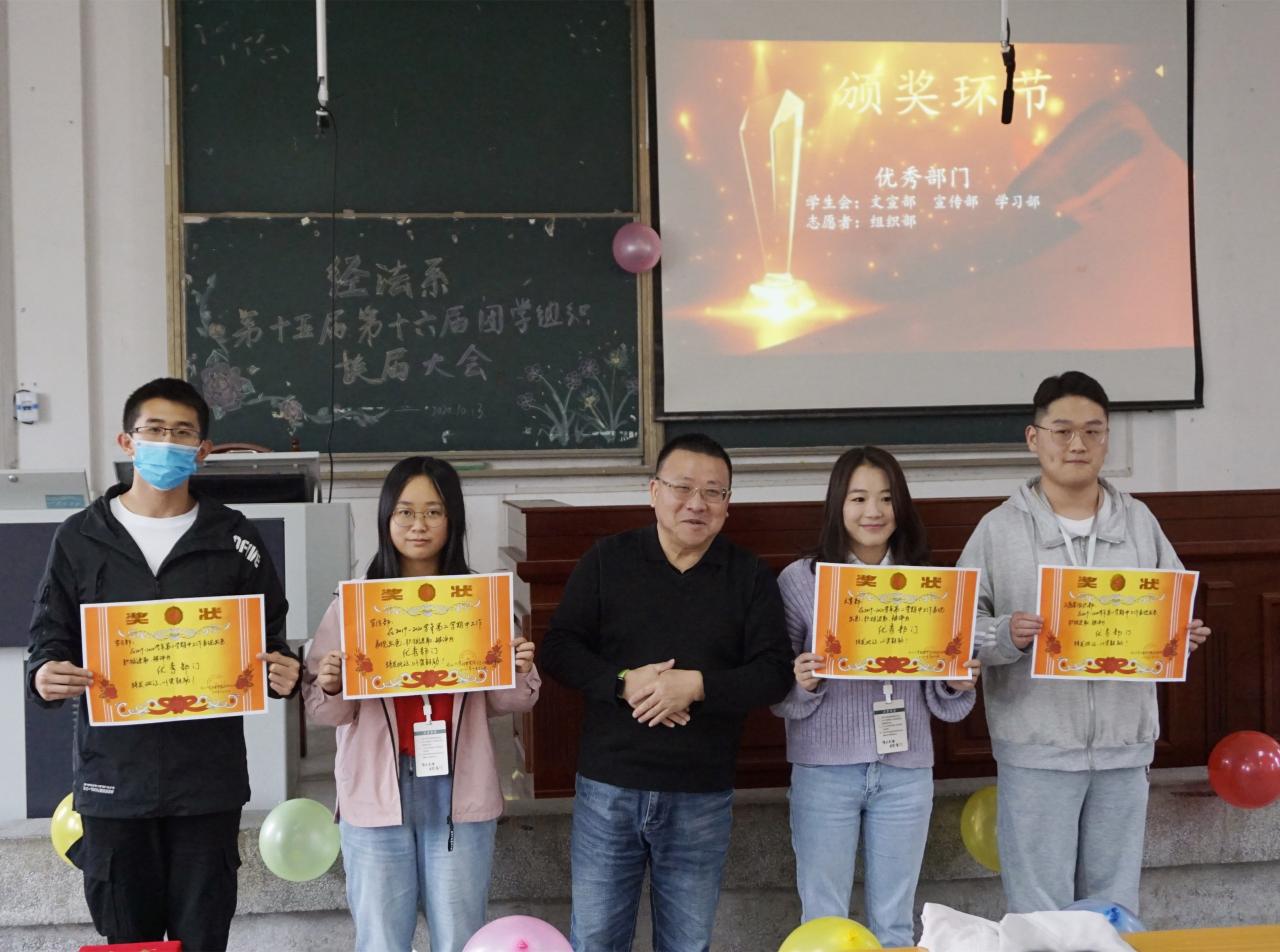 会议最后,党总支副书记杨杉杉老师为第十六届团总支员工会主席团、志愿者服务队队长、副队长颁发聘书。党总支书记李成军老师为员工会优秀部门颁奖,借此勉励下一届员工会各部门积极工作、努力进取。