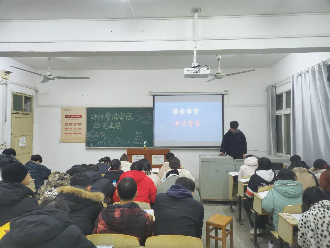 班会开始后,各班学习委员从四、六级考试背景入手,为同学们介绍了英语四、六级考试的来源和发展,并着重介绍了四、六考试的目的。学习委员提醒大家,考前请准备准考证、身份证和员工证,自带考试用品,并强调了考试时间。不要错过考试。