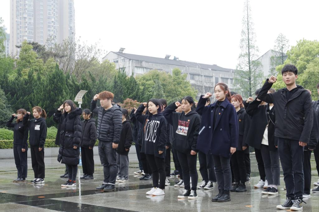 2021年4月1日中午11点40分,由辅导员卢佳智、文国霞和滕宋云三位老师带队,32名志愿者随队前往荆州市沙市区革命烈士陵园开展扫墓活动。下午一点十分准时到达目的地后,全体成员整理好仪容仪表。一点半准时开始烈士陵园祭扫,第一项向烈士纪念碑敬献花篮,全体师生进行默哀仪式,缅怀烈士先辈;第二项,全体团员重温入团誓词,第三项,在庄严的宣誓仪式完毕之后,辅导员老师带领同学们为烈士墓碑鲜花鞠躬并对陵园进行打扫擦拭墓碑。最后,大家一同参观革命烈士纪念堂。活动结束,全体成员在烈士纪念碑前合影留念。
