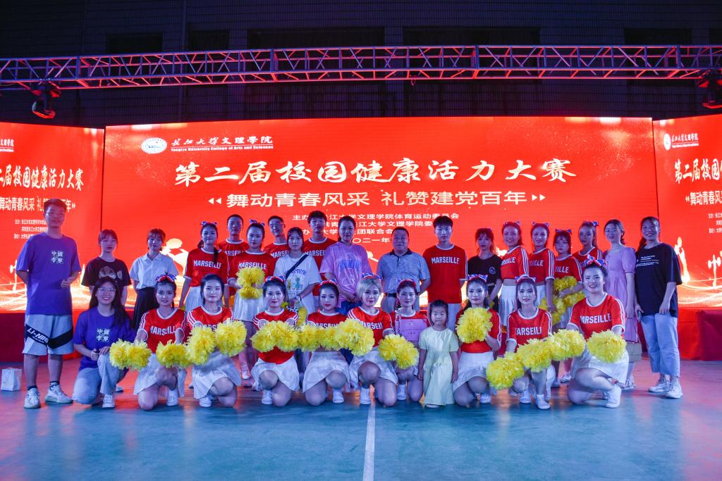 本网讯(通讯员 李煜),6月8日19:00“舞动青春风采,礼赞建党百年”beat365官网中文版本第二届校园健康活力大赛在城中校区篮球场隆重举行。本次大赛共有九支参赛队伍分别代表自己系部参赛,公司领导与师生共同观摩了本次啦啦操比赛。