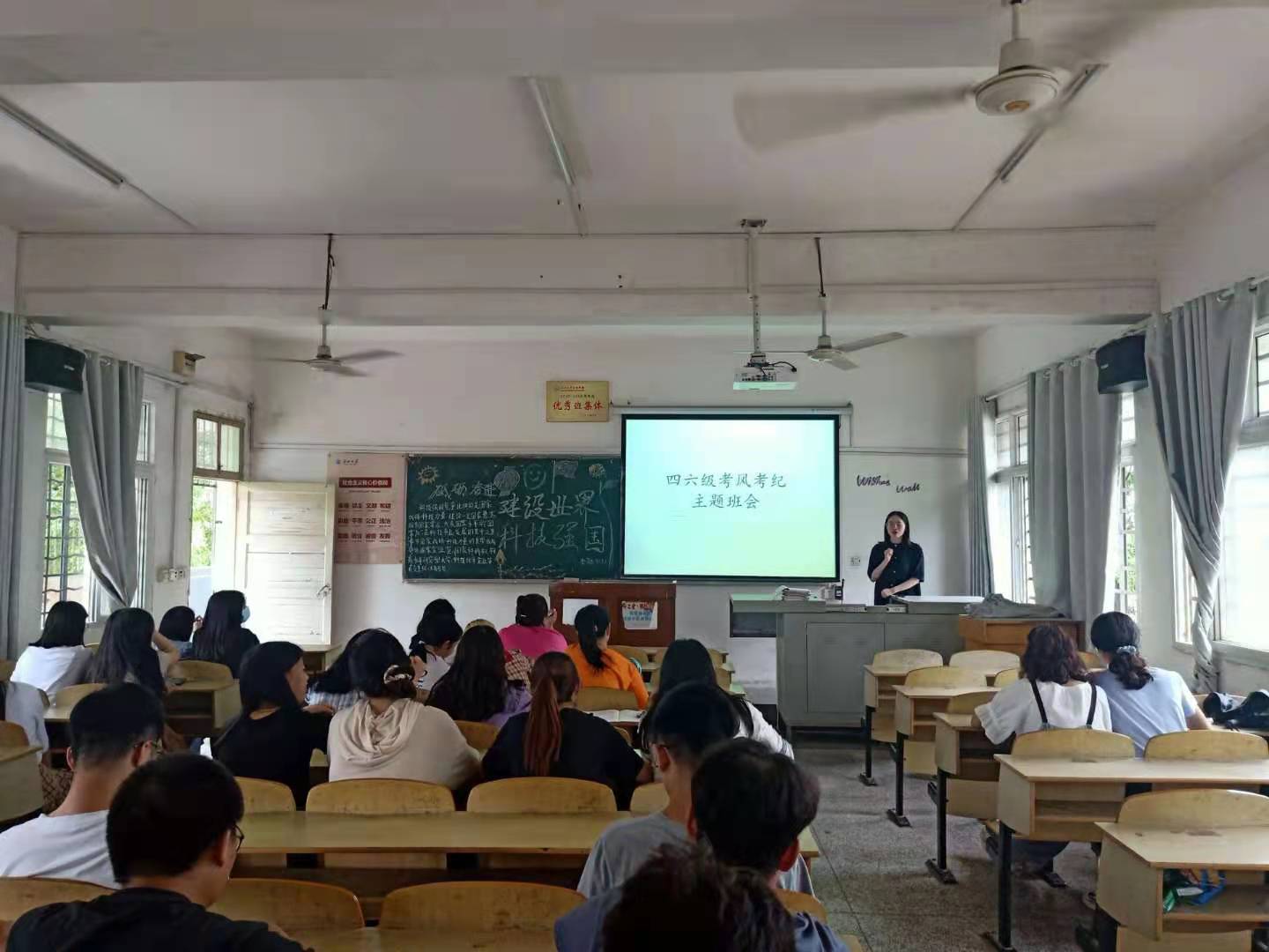 本网讯(通讯员 杜歆怡)为维护国家教育考试权威性,维护考生利益,确保考试公平公正,加强考风考纪建设,6月10日晚,经济与法学系各班开展英语四六级考风考纪主题班会,班会由各班学习委员主持,各班辅导员及全体同学参加班会。