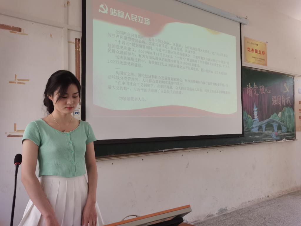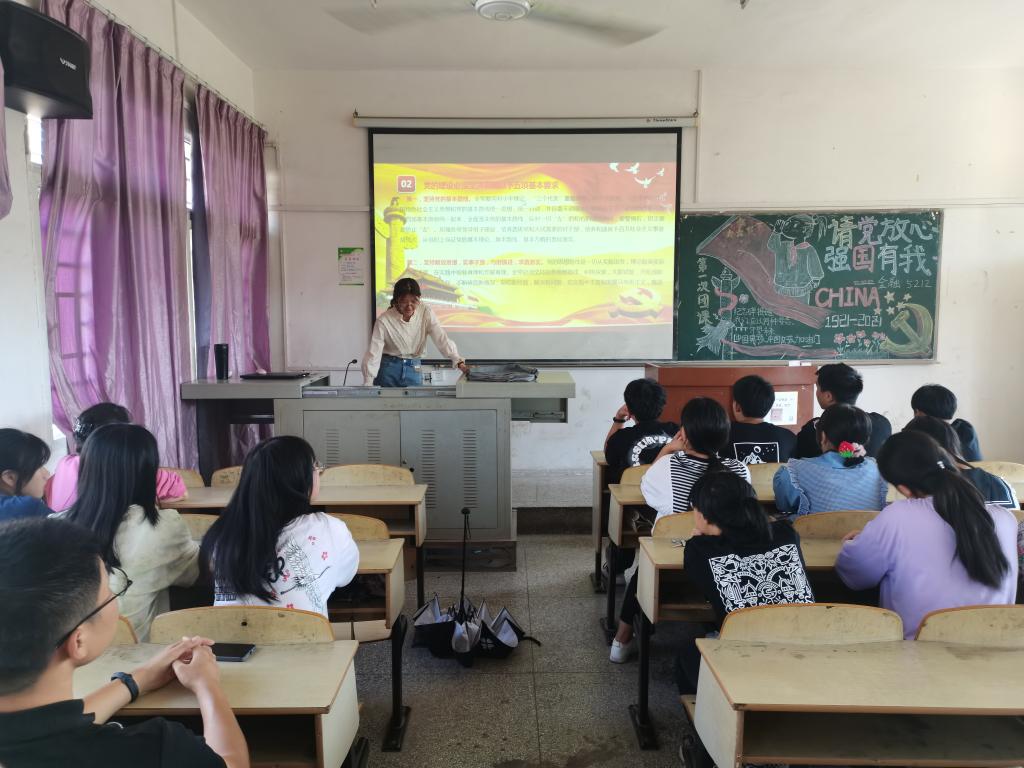 当下的青年不仅是新时代的见证者,更是全程参与的建设者,注定是奋斗的一代、奉献的一代、大有作为的一代。国贸5191、法学5191通过开场游戏来活跃气氛并借此引出主题,通过对于“强国有我”的深刻讲解,生动形象的阐明了强国与青年之间的辩证关系。金融5212班在深扣主题的基础上通过与同学们深入交流互动,在深入讨论中对习近平总书记“七一”重要讲话精神进行了深刻的学习与领悟,抛出“党旗党徽构成及意义”等问题引出同学们主动学习的积极性。