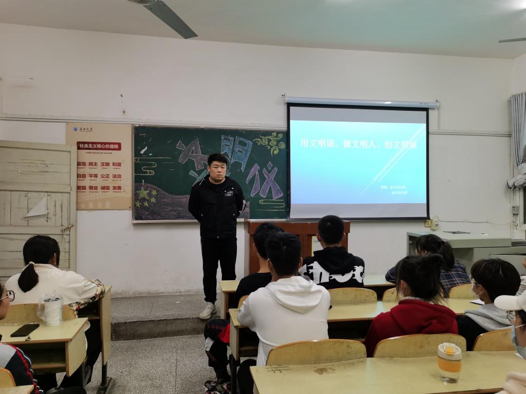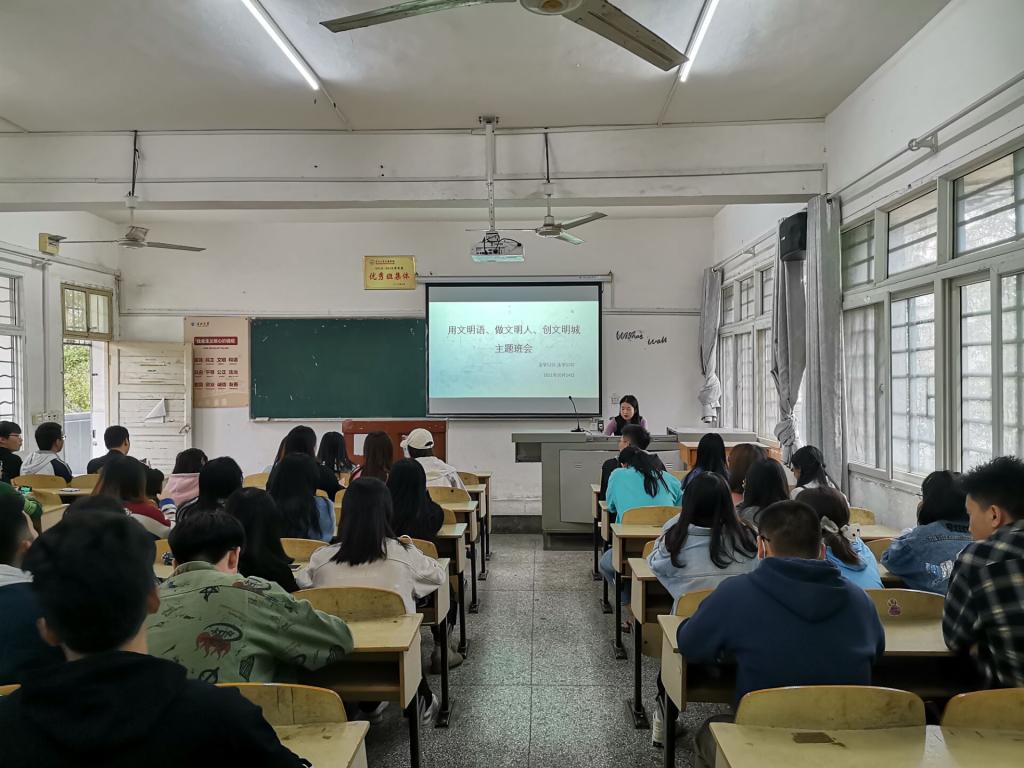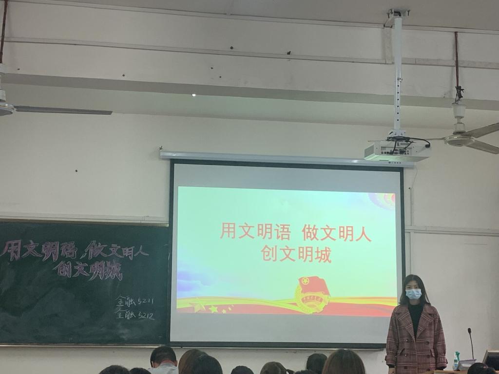 本网讯(见习记者 李雅雯 田雨洁 员工记者 龚千惠) 10月14日,我系各班级分别开展“用文明语,做文明人,创文明城”主题班会,本次班会由我系各班级辅导员主持。