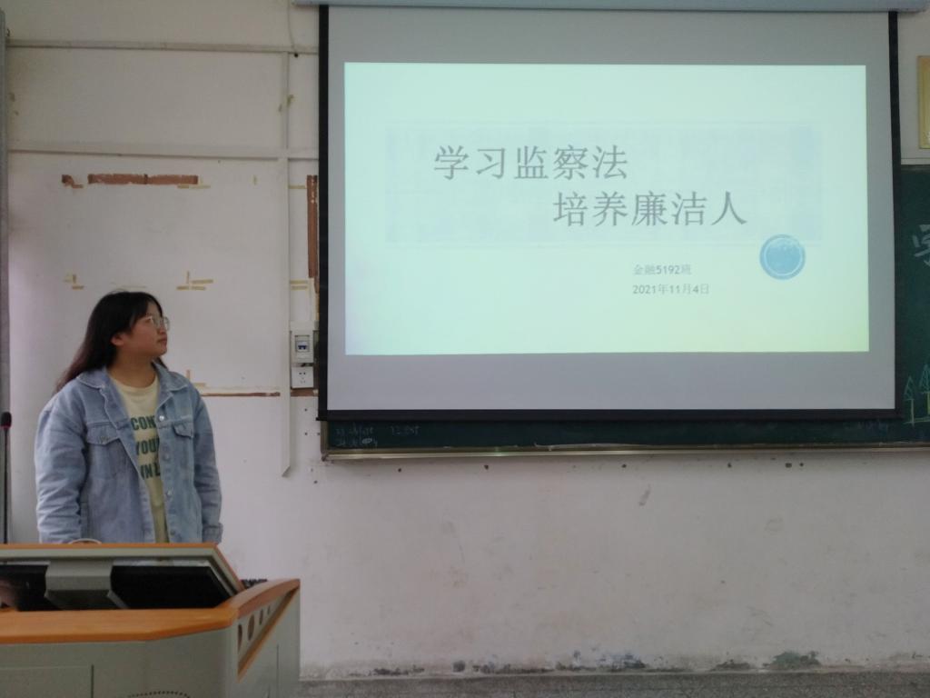 本网讯(员工记者 龚千惠 见习记者 帅赟 田雨洁)随着激浊扬清、惩贪反腐的深入,为了加强同学们对监察法相关条例的学习,提高法治意识。经法系各班于11月3日-4日开展了“学习监察法,培养廉洁人”主题班会。班会由各班团支书主持,班级全体成员参加。