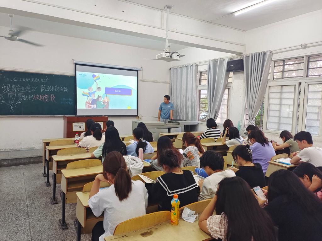 本网讯(见习记者 陈燕妮 帅赟)近期天气炎热,员工溺水事件处于高发期,为提高老员工安全意识,积极推进“平安校园”建设,进一步筑牢校园安全防线。经法系各班于6月2日早自习开展“提高安全意识 防溺水、防诈骗 抵制校园贷款”主题班会,班会由各班生活委员主持。