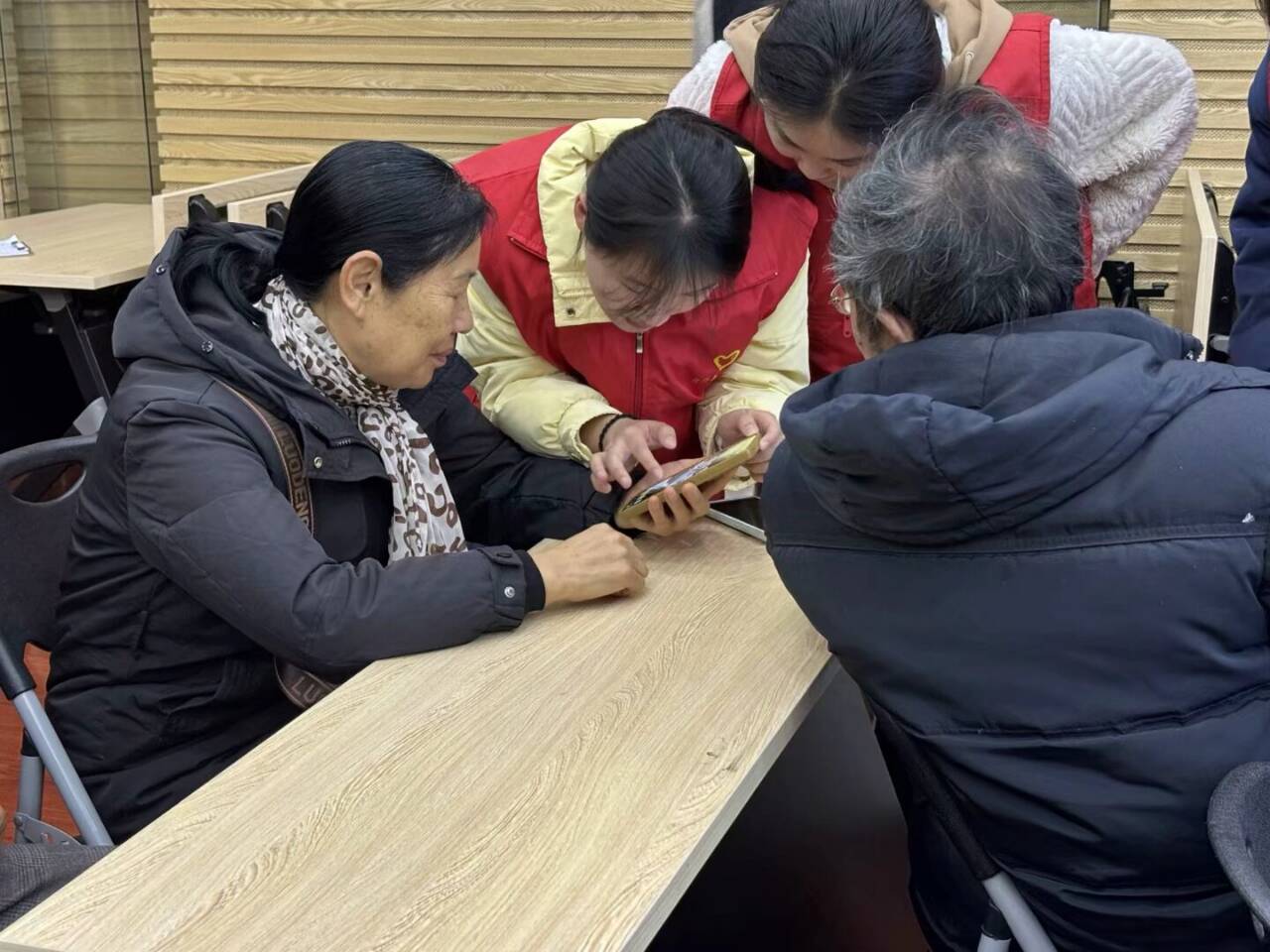 发放过程中,志愿者还留意到老年人对智能手机使用问题关注度较高,如软件下载、字体调整等基础操作成为咨询热点。于是,志愿者灵活采用一对一辅导与集中答疑相结合的方式,为老年人耐心解答,现场氛围热烈且温馨。