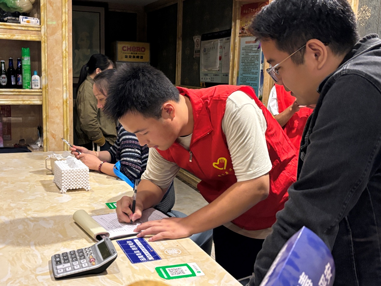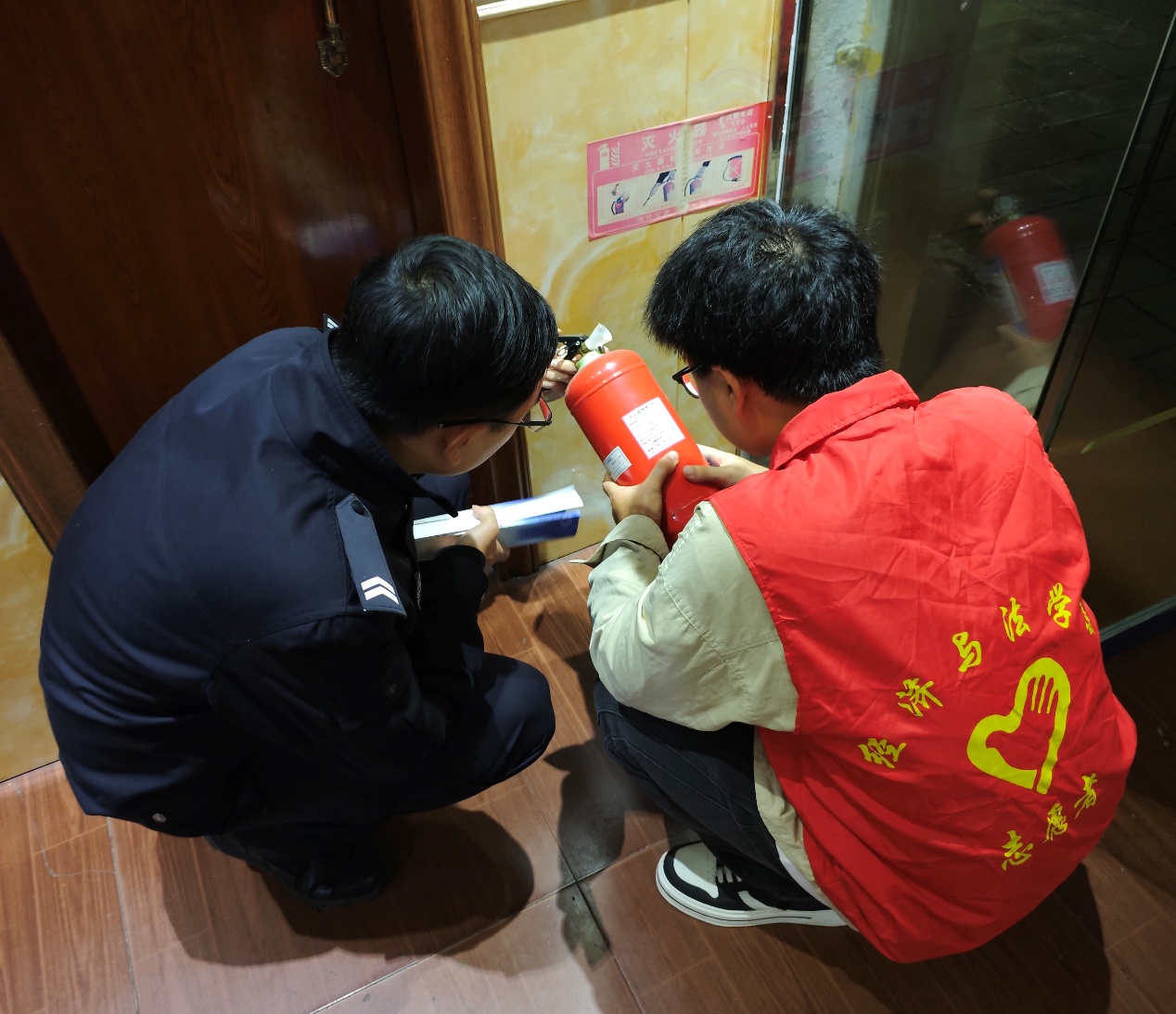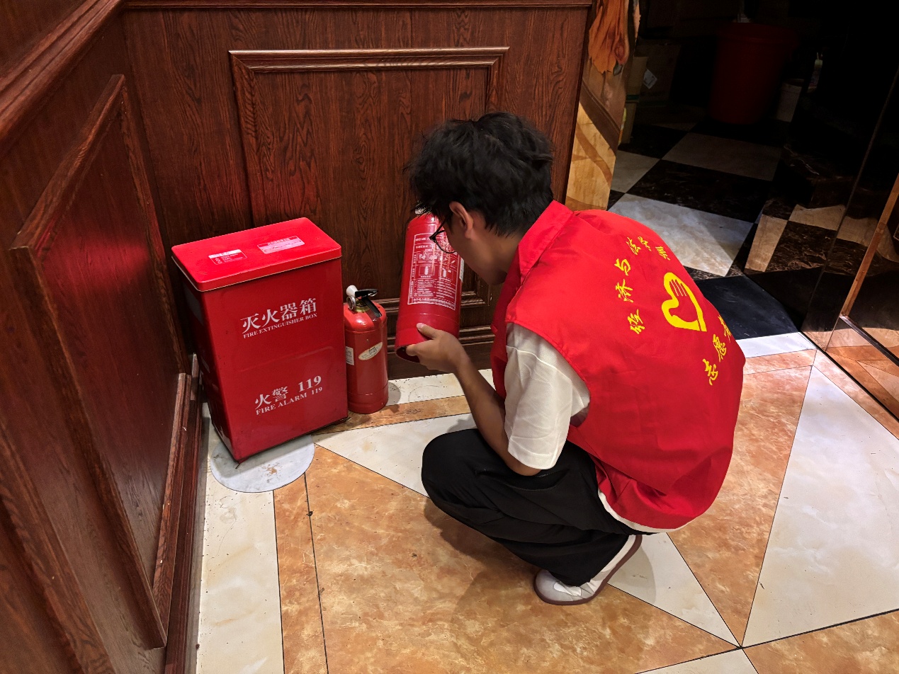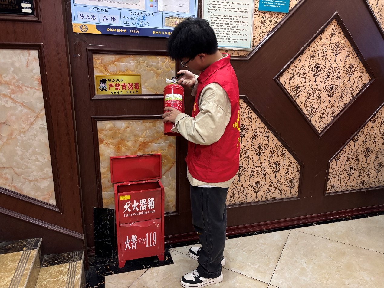 经法系志愿者们与社区工作人员、社区民警组成联合检查组,对沿街商铺、餐饮场所、超市商场、娱乐场所等重点区域展开细致排查。检查过程中,志愿者们充分发挥专业素养与实践能力,重点聚焦消防安全、用电安全、燃气安全、食品卫生等关键环节。在沿街商铺及餐饮场所,他们仔细查看消防通道是否畅通、消防设施是否完好有效、电梯运行是否正常;于商超市场和娱乐场所,则对消防器材配备、用火用电管理、燃气使用安全、应急疏散通道等情况进行深入检查。