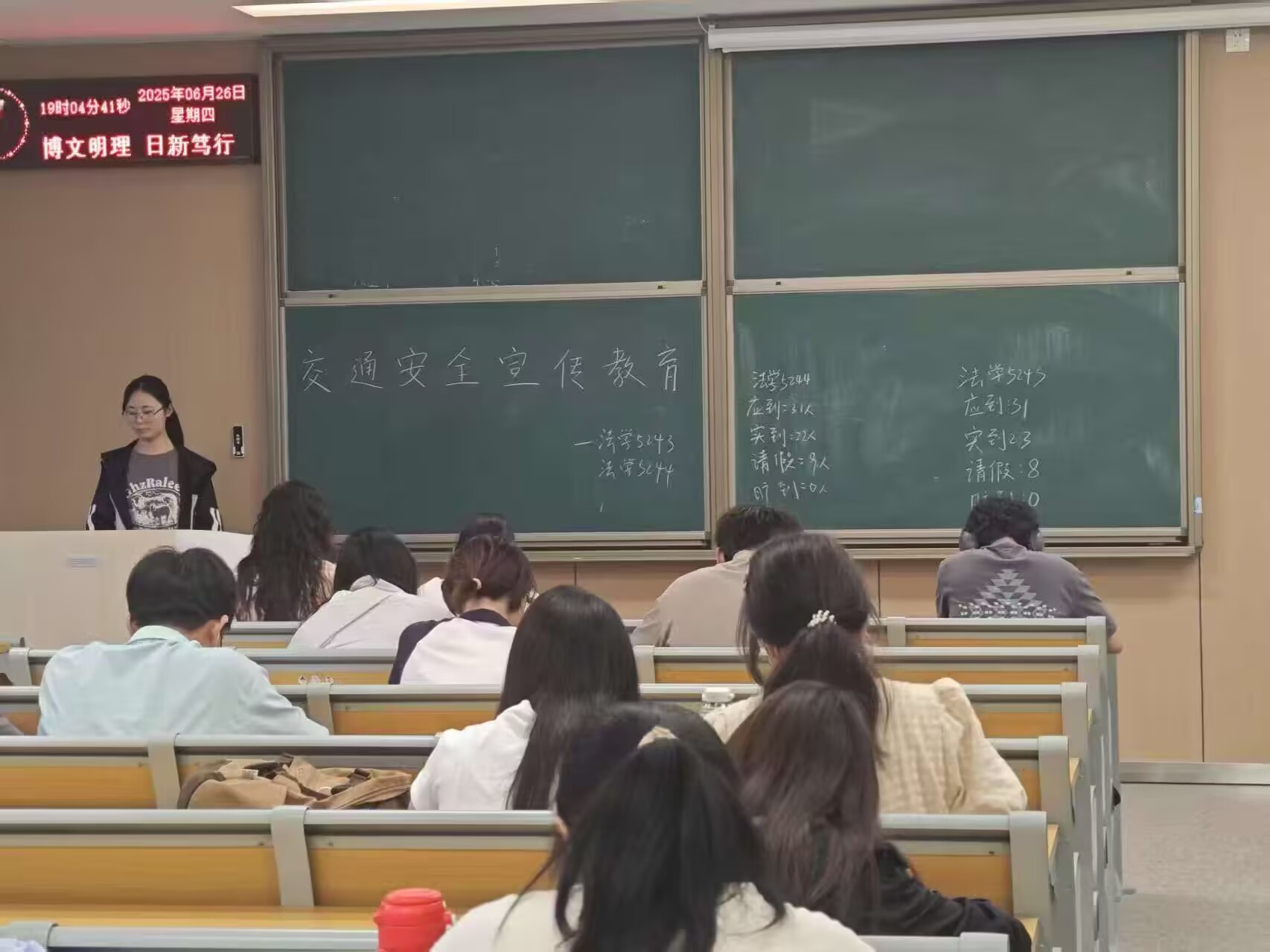本网讯(见习记者:谭钱鑫)为提升员工交通安全意识,预防和减少交通事故发生,保障员工人身安全,6月26日,经法系同步组织各班级召开了交通安全宣传教育班会。