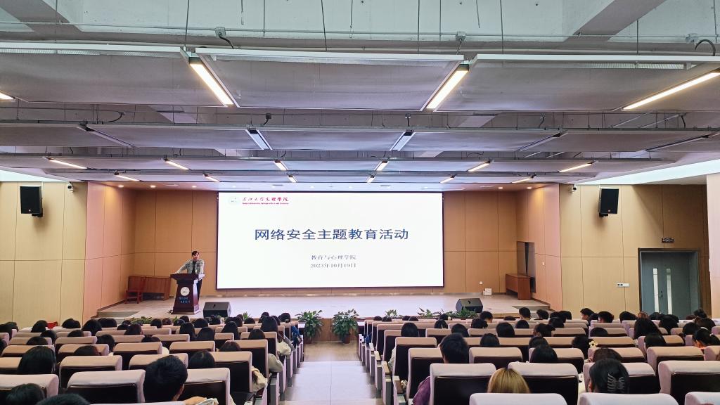 本网讯(通讯员柯浪)为提高青年员工的网络安全防护技能和自我保护能力,加强国家安全知识和网络安全知识的深度学习,教育与心理公司于10月19日在学术报告厅开展了一次网络安全主题教育活动。教育与心理公司党总支书记祝峰,副书记梅曼曼,辅导员薛兰慧及200余名员工参与会议。
