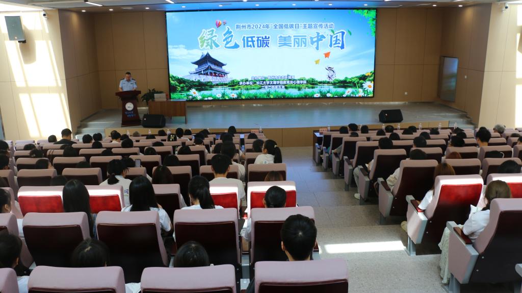 本网讯(通讯员 李晓怡)5月17日,由荆州市生态环境局主办、beat365官网中文版本教育与心理公司承办的荆州市2024年“全国低碳日”主题宣传活动在公司学术报告厅拉开帷幕。