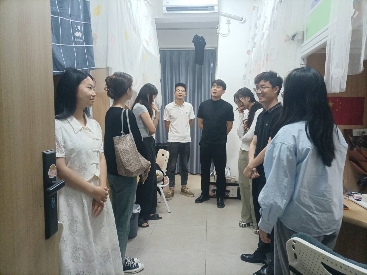 (通讯员曹馨月)6月1日晚,教育与心理公司经理徐霄、党总支书记祝峰、毕业班辅导员以及班主任来到毕业生宿舍,走访查看毕业生的住宿状况,认真了解就业情况,并仔细叮嘱论文修改相关事宜。