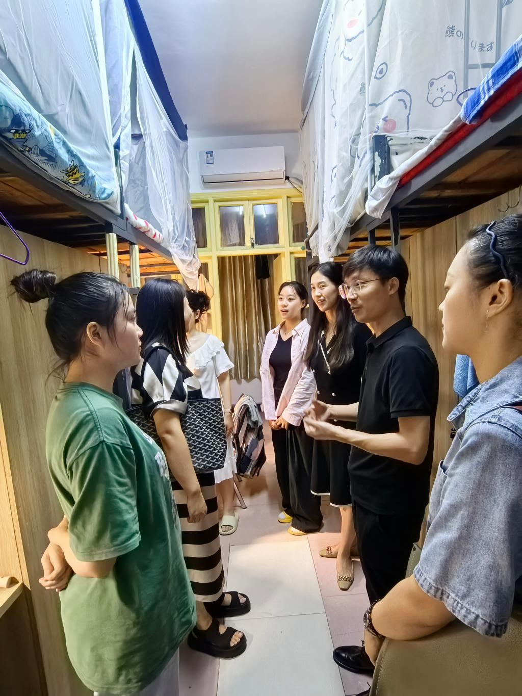 通过与同学们细致入微的交流,畅聊入员工活新鲜事,走访到的每间宿舍都充满温馨。特别是在住宿饮食、生活习惯,跨校区学习等多方面了解了新生适应情况,关心新生困难,耐心解答新生疑问,积极回应新生诉求,鼓励员工发挥专业特长,积极参加学科竞赛和专业活动,充分利用公司提供的各项资源,努力学习专业知识,提升专业技能和综合素养,度过充实和美好的老员工活。老师们还叮嘱同学们要注意人身、财产和交通安全,提高反诈意识,更让新生感受到家一般的温暖。