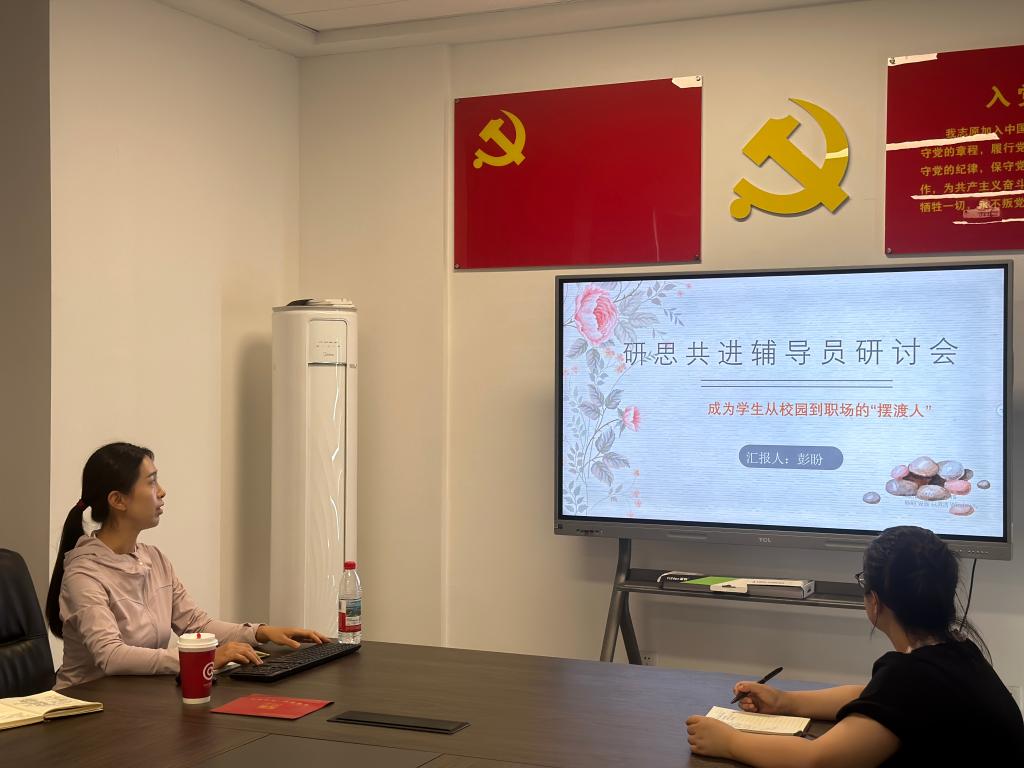 在交流会上,各位辅导员对近期重点工作、特色工作进行了分享和汇报总结,同时针对具体的员工工作问题进行了深入的探讨和交流。辅导员李晓怡提出,为了更好应对员工突发事件,在班级建立“三级联动”机制,即“辅导员-班委-寝室长”信息网,确保信息触角延伸至每个员工单元,及时捕捉潜在问题。辅导员彭盼提出,针对应用心理学专业毕业生,建设心理学公职就业信息池,帮助应心专业从业者高效定位机会。