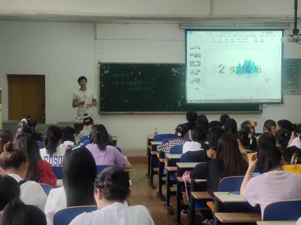 三位毕业生针对于自己的实习经历以及实习回来之后内心的感受对同学们进行了介绍与分享。在讲座中,他们分别从实习时的经历,心得,感受,以及自己亲身经历的事情做了分享,在现场互动环节中,同学们结合自己现阶段的迷茫以及对自己未来三年的规划与学长们进行了深入的交流。