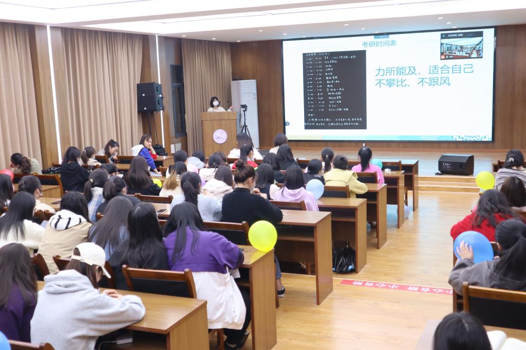 本网讯(通讯员 谢承玉)4月6日晚,教育与心理系在城中校区3-408学术报告厅举办考研交流会。教育与心理系主任徐霄、副主任马君莉,学前教育专业教师及2018级全体员工参加。