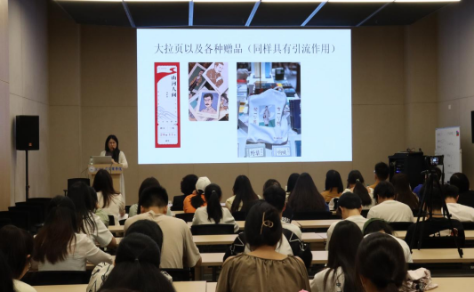 讲座中,黎萍从当代图书刊物的发行营销的变革、出版社结构以及工作流程、图书营销的起点、编辑运营模式、编辑灵感的来源等几个方面分享了在文学编辑岗位工作的经验与心得体会,并以图书《平原客》为例进行了详细的分析。