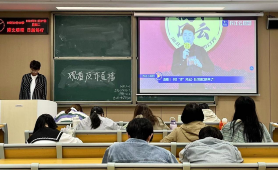 活动中,各班班长通过多媒体设备向同学们播放本次反诈脱口秀《校“诈”风云》,20级同学则通过线上观看。脱口秀以轻松诙谐的表现形式,以真实案例为素材,通过讲述真实案例和分析诈骗手法,向本院员工传递防骗知识。同学们不仅在笑声中了解到了各类防骗策略,还从受害者的亲身经历中深刻意识到诈骗的严重性和危害性。活动最后,各班班长也从“诈骗的原因”和“诈骗的危害”两个方面有力强调了预防诈骗的重要性,进一步提高了同学们的反诈意识。