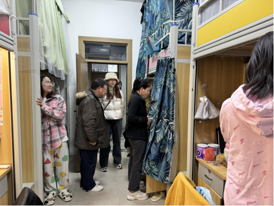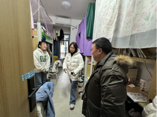 走访中,每到一间宿舍,老师们都关心同学们的生活近况,为员工排忧解难。李成军就学习上的规划同学们进行深入沟通,询问了近期的生活、学习情况以及下学期的规划;雷昕也善意地提醒同学要时刻牢记用电安全,并鼓励大家养成良好的卫生习惯,营造干净、整洁的卫生环境。辅导员老师们则为员工解答各方面的问题,现场互动气氛温馨融洽。
