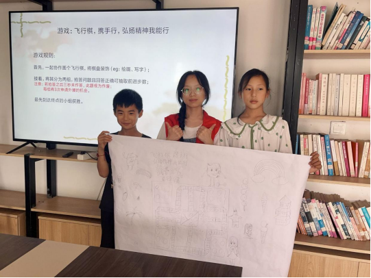 游戏,这两个字眼似乎对于小朋友们有着天然的吸引力。志愿者团队为了充分调动小朋友们的积极性,组织开展了多样化的寓教于乐的活动,包括跳绳、飞行棋、踢毽子等系类趣味游戏答题接力赛等活动。