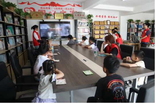 为了提升小朋友们对井冈山精神,党史的了解。志愿者团队组织看展红色电影《战火黎明》。并向同学们介绍电影故事的原型,电影中八路军在抗战过程中一幕幕生死悲壮的画面,激起了在场同学心中的千层波浪。