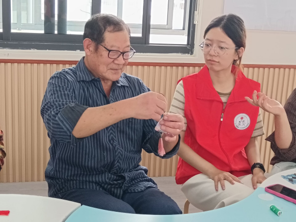 “感恩之手,绘制美好”的手工环节则让活动氛围达到了高潮。志愿者们与老人们围坐一堂共同制作茱萸香囊,制作过程中,现场欢声笑语不断,在志愿者的协助下,一幅幅精美的作品在老人们手中诞生。