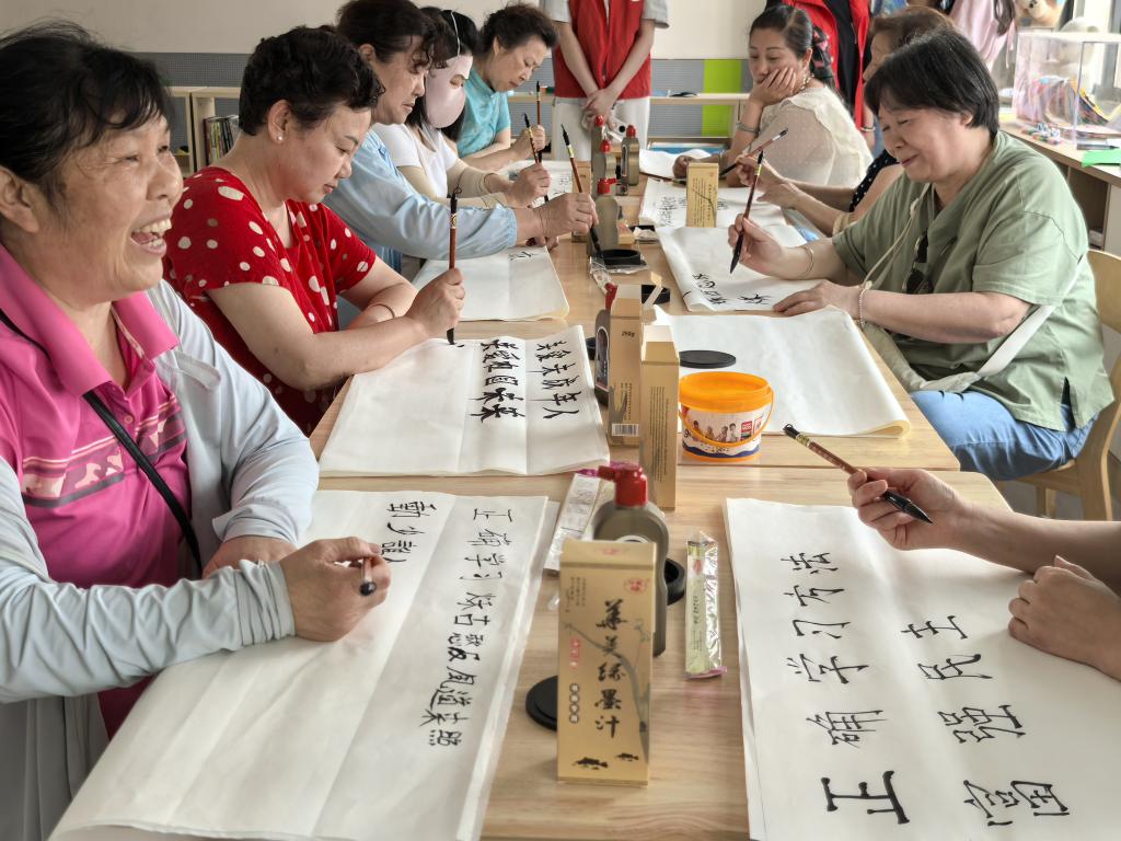 参与者们还将生成的诗词作品作为素材,进行书法创作与临摹练习。老人们专注地手握毛笔,在宣纸或字帖上一笔一划认真书写。民主社区居民陈新洲老人表示:“DeepSeek让我能更自由地创作书法作品,还能学习不同书法风格,非常实用。”
