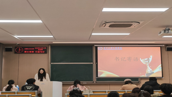表彰环节结束后,雷昕书记向获得表彰的优秀员工表示热烈祝贺,向辛勤指导员工工作的辅导员老师、全力付出的全体团学骨干致以诚挚感谢,并结合公司发展方向,对全体员工骨干提出三点希望:一是坚定理想信念,争做引领青年的表率,将个人成长融入公司发展大局;二是锤炼务实作风,深耕服务同学的沃土,切实为同学解决实际困难;三是勇于开拓创新,担当公司文化的先锋,打造具有专业特色的品牌活动。