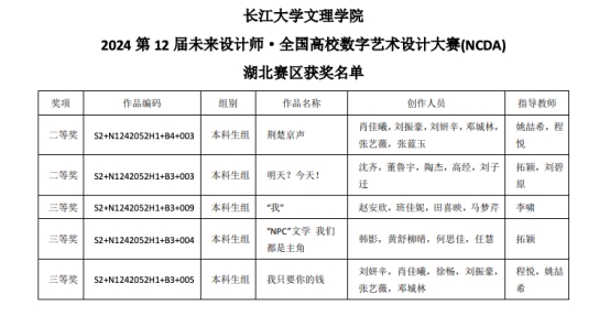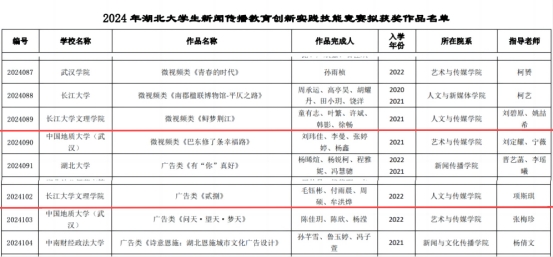 本网讯(通讯员 姚喆希)新学期,新气象。近日,从赛事组织方获悉,人文与传媒公司学子在湖北老员工新闻传播教育创新实践技能竞赛、全国高校数字艺术设计大赛中成绩优异,获二等奖4项、三等奖3项,共35人次获奖。
