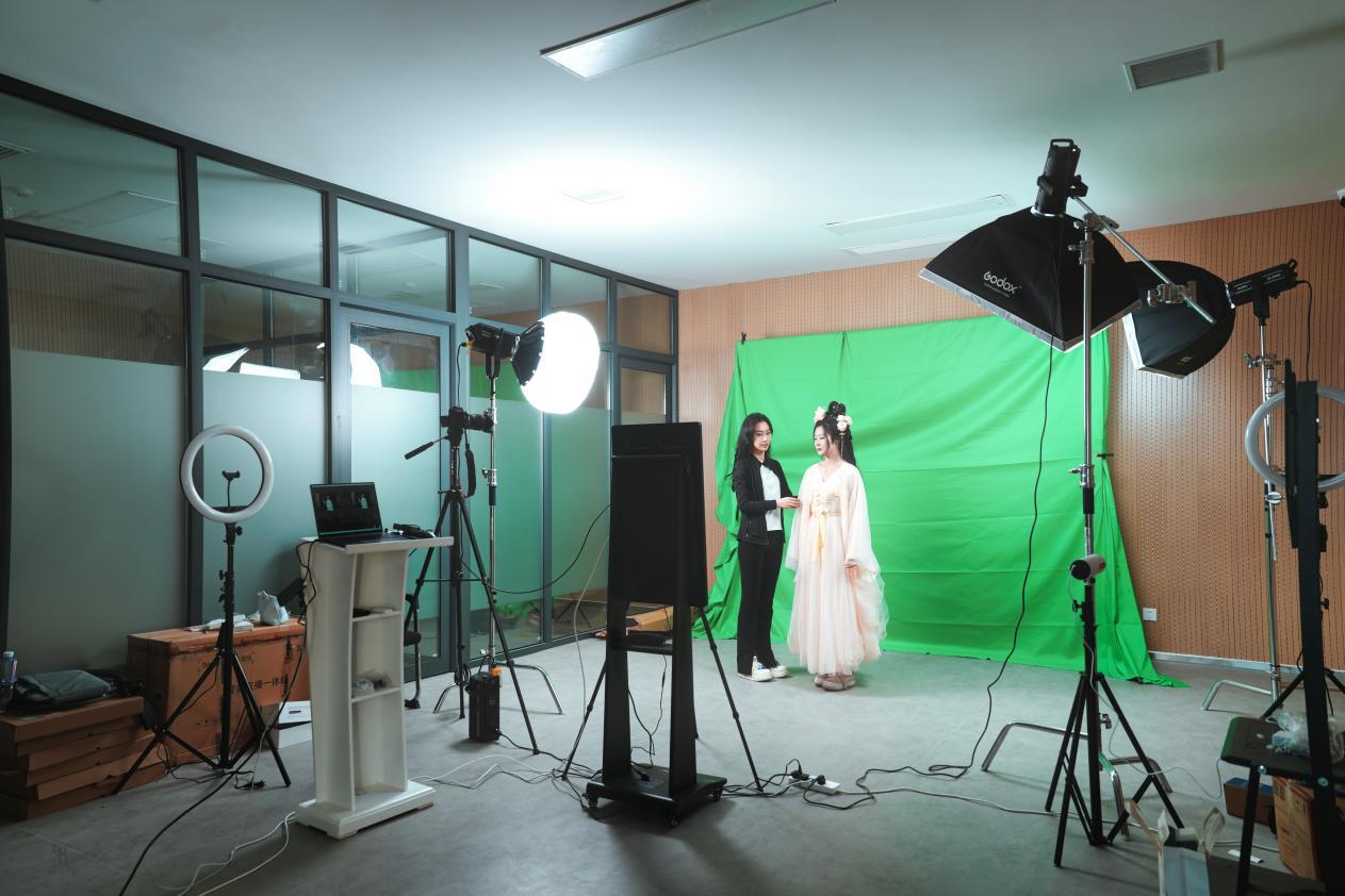 老师在指导员工在直播教室出镜(实验楼