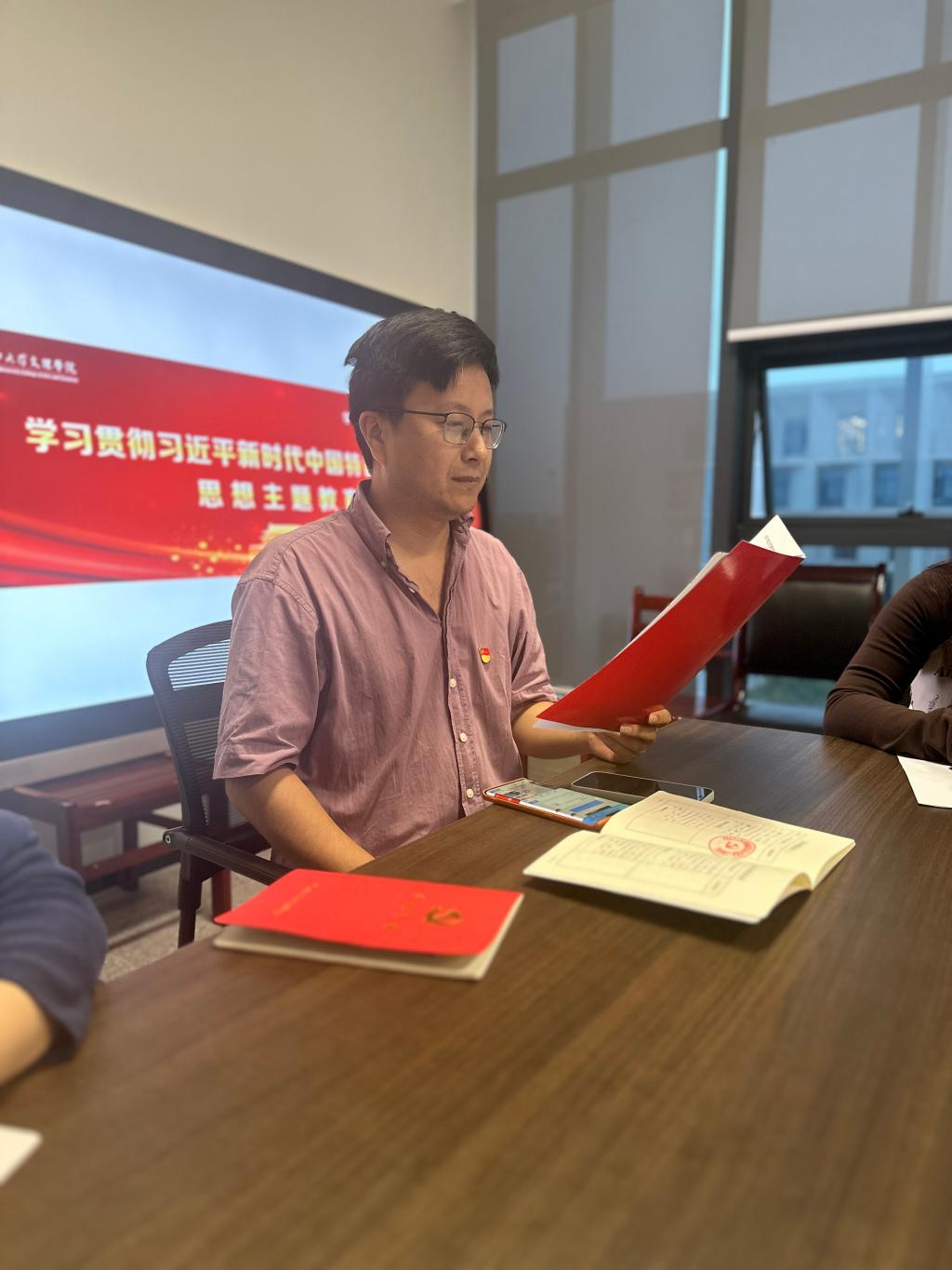随后,刘磊同志以“党的创新理论知识图谱构建”为主题讲授党课(微党课)。全体党员就作为一名教师党员,畅谈如何通过主题教育学习推动干事创业,并进行了深入地研讨。