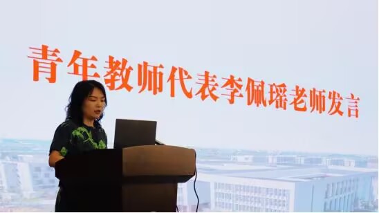 接着,建筑与设计公司青年教师代表李佩瑶老师寄语新生。李老师通过分享设计类专业本科人才培养理念及专业教学成果,寄语新同学们把握大学时光,不断提升自我。